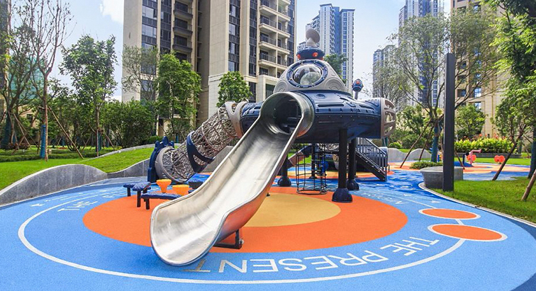設(shè)備集多元游樂功能于一體:超長不銹鋼滑梯帶來順滑的俯沖體驗,螺旋鉆行通道與攀爬網(wǎng)可鍛煉孩子的肢體力量與探索欲,開闊的艙體平臺也為社交互動提供了空間。它采用環(huán)保耐用的戶外材質(zhì),全圓角安全設(shè)計與防滑緩沖地面保障游玩安全,適合安置在高端社區(qū)、城市公園、親子樂園等場景,既能讓孩子在模擬星際探險的情境中釋放想象力,也能憑借極具辨識度的科技感造型成為社區(qū)的標(biāo)志性游樂打卡點。