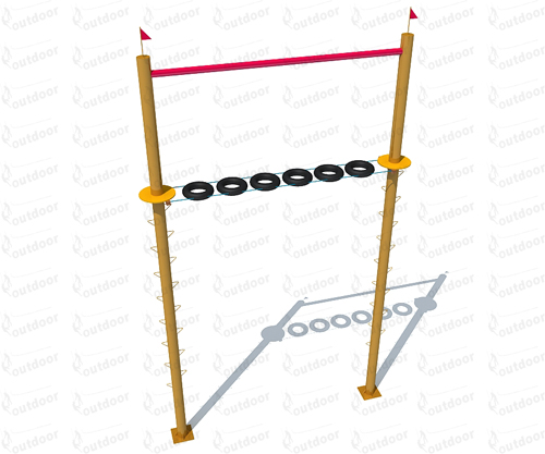 2、兩根立柱的九米處連接兩根穿有輪胎的鋼絲繩