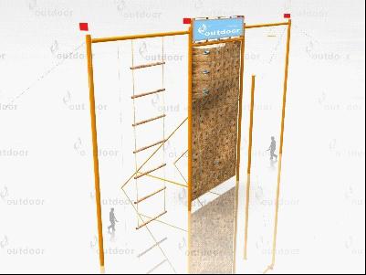 本套拓展器材從心理學(xué)角度入手,從天梯之間的距離、器械總體高度等方面都做了非常嚴(yán)密的設(shè)計,使其更加符合人的心理規(guī)律;從器械學(xué)角度來看,該設(shè)備做了組合型設(shè)計,減少了占地面積;