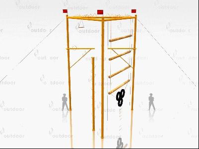 本套拓展器材從心理學(xué)角度入手,從天梯之間的距離、器械總體高度等方面都做了非常嚴(yán)密的設(shè)計(jì),使其更加符合人的心理規(guī)律;從器械學(xué)角度來(lái)看,該設(shè)備做了組合型設(shè)計(jì),減少了占地面積;